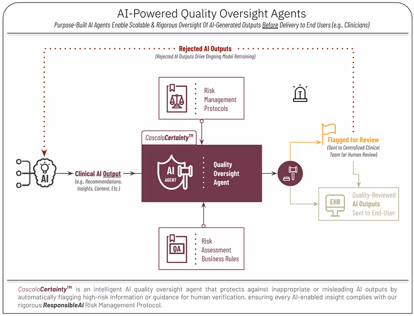 The future of AI in healthcare depends on building systems that prioritize safety, accountability, and transparency. At Cascala Health, our CascalaCertainty AI oversight agent is designed to reflect these values, ensuring that every AI-enabled output is rigorously assessed for risk and reviewed by human experts when the automated risk assessment deems necessary. We believe that AI should be a trusted partner in patient care—one that operates with the same level of responsibility and integrity as the clinicians it supports.